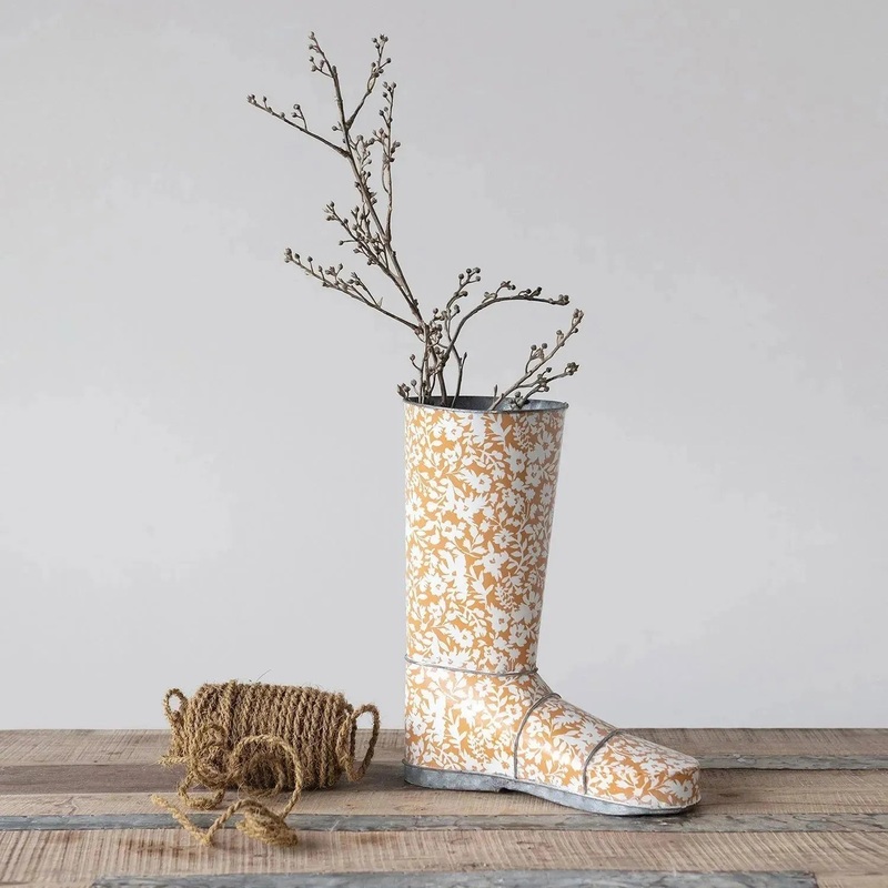 Get yourself into a little world of fairy tale and charm with our Decorative Metal Garden Boot. The work is whimsical and well made, bringing nature into every spot. This adorable cast metal garden boot measures 10-1/2_ long by 5-1/2_ wide by 12-1/2_ high