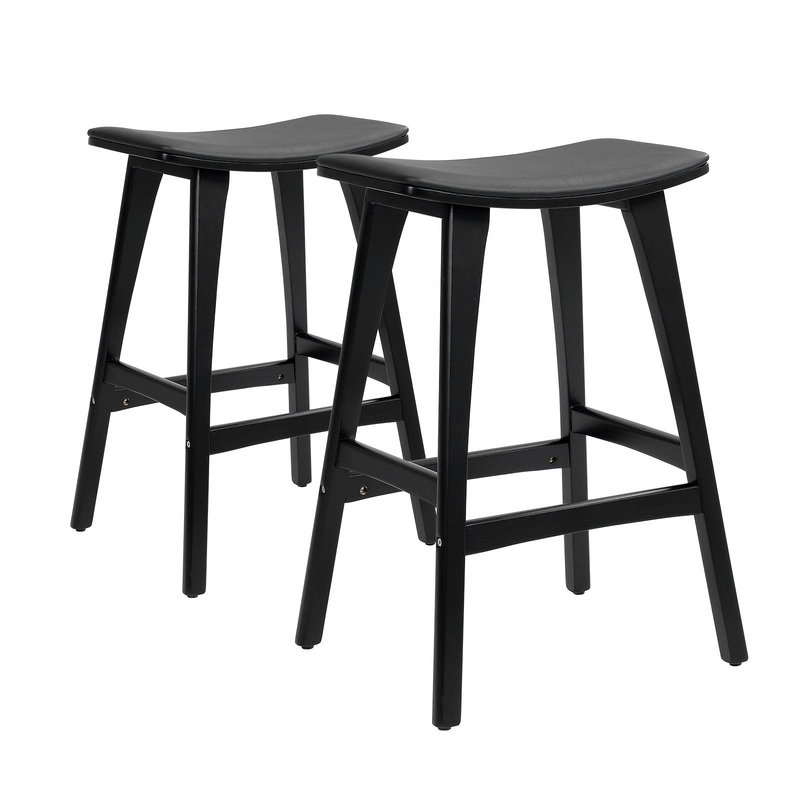 La Bella 2 Set Wooden Bar Stool 65cm KANSO Kitchen Barstools Padded PU Dining Chair - BlackInvite a sense of calm sophistication into your space with this bar stool, a piece inspired by the timeless beauty of Japanese temple architecture, designed to capti