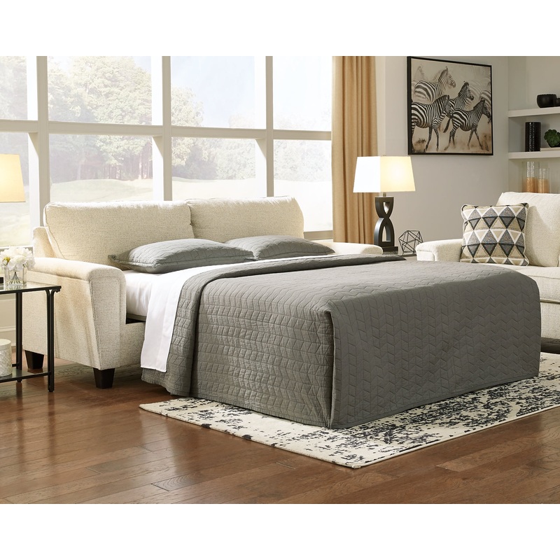 If youre looking to lighten the mood, youre sure to find this space-conscious, budget-conscious queen sofa sleeper a breath of fresh air. Covered in a cream-tone chenille upholstery loaded with plush texture, this less-is-more contemporary sofa is dressed