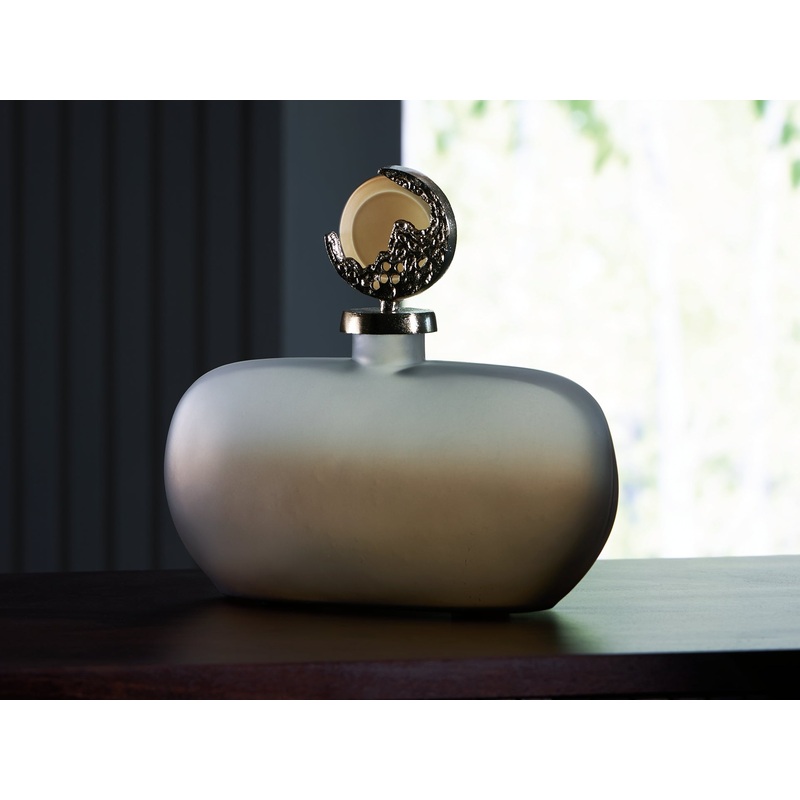 Bring stately elegance home with this jar. Made with frosted glass in a luxurious taupe finish, its ombre effect adds visual intrigue to a shelf or mantle. A textured goldtone topper provides an added dose of traditional flair.