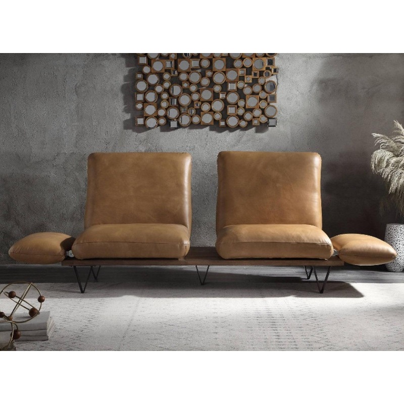 Narech Collection by Acme Furniture Nutmeg finish Top grain leather 360 degrees swivel seats Adjustable backrest & armrest Tight back & seat cushions 2 pillows included Full foam seat Solid wood base Metal "V" shape leg