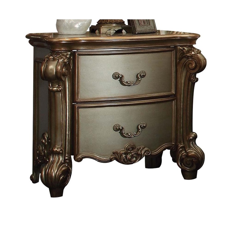 Vendome Collection by ACME Crafted from wood veneers & solids Side Metal Glide (Ball Bearing/Full Ext) English Back Only Felt Lined Drawers 2 Drawers