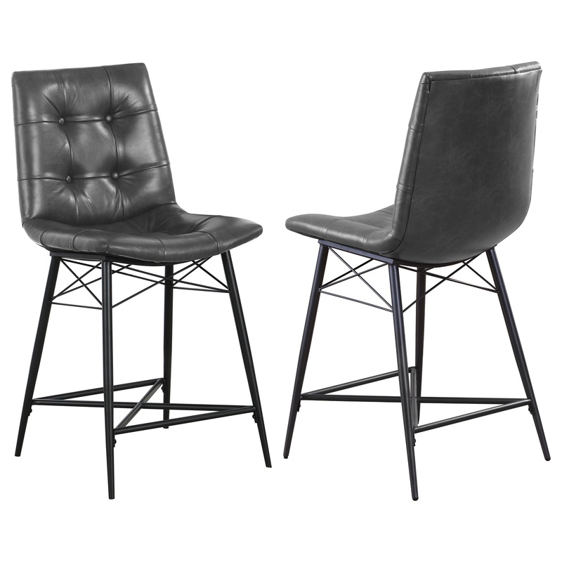 Cool and cozy, this counter height stool is the ultimate dining room upgrade. The padded seat is wrapped in smooth leatherette for an inviting look and feel. Button tufting adds a subtle, decorative touch. A sleek, metal base gives it a modern look while p