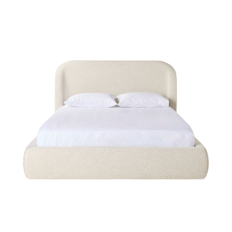 Bring elegance and comfort to your bedroom with the Alenna Queen Bed. Made with a sturdy timber, plywood and MDF frame, and upholstered in high-quality fabric with a textured finish, this bed offers both style and durability. Its neutral colour complements a variety of decor styles, while the gently curved headboard and curvilinear shape create a soft, inviting look. The flat slat-support system provides excellent mattress ventilation to keep you cool and comfortable.