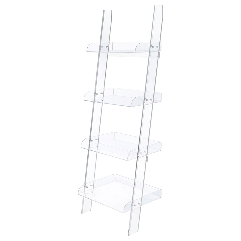 Bring a chic, airy touch to your living room with this clear acrylic ladder shelf that merges form and function. Its four open tiers offer ample space for showcasing books, dcor, or multimedia items. Lightweight yet sturdy, this modern bookcase allows natu