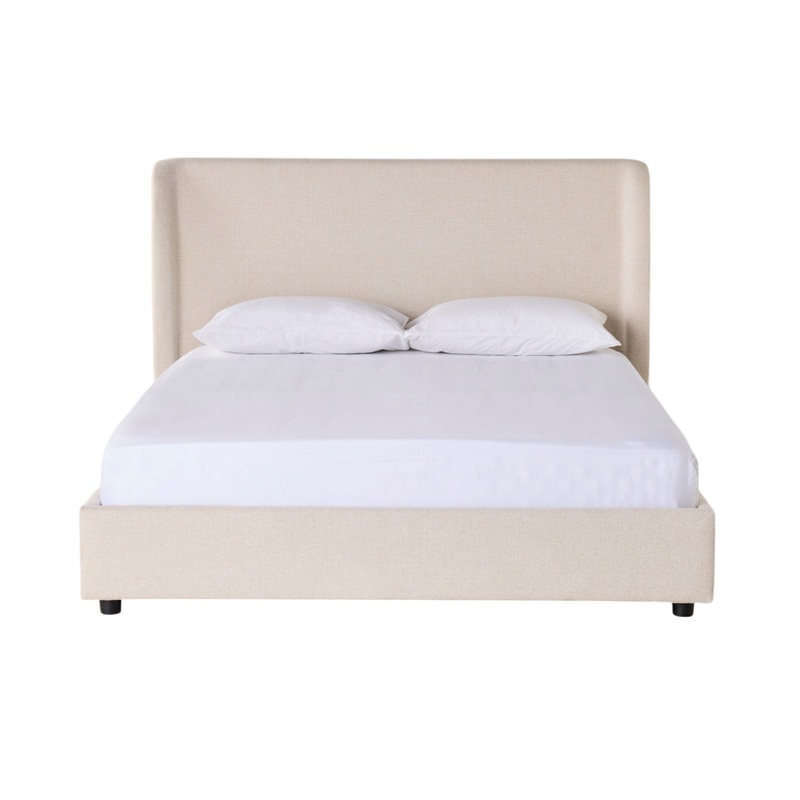 Transform your bedroom into a haven of relaxation with the Angel King Bed. Upholstered in soft weave fabric with a high winged headboard, it blends luxury and comfort seamlessly. The fully upholstered base complements the headboard, providing a refined and