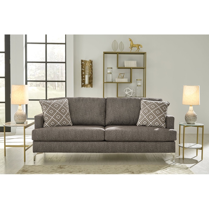 If modern subtlety is your style, settle into the heavenly texture of this sofa. The tremendously soft upholstery has a slight herringbone pattern that adds depth and richness to the java color. The metal accent legs elevate this piece as well as the style