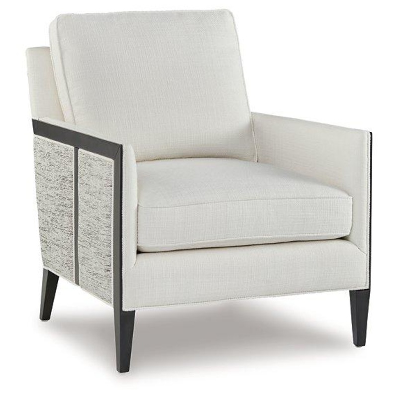 This accent chair completes your lounge area in chic, contemporary style. Its a fashion-forward take on geometric patterns, with the exterior fabric in varying neutral hues contrasting the ivory seat. With this chair, your trendy interior is upgraded with both eye-catching appeal and everyday comfort.