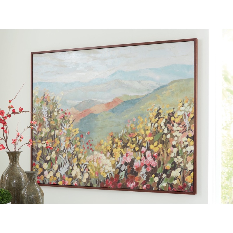 Frolic in a field of florals. This wall art showcases a landscape design bursting with color, bringing a lively feel to your decor. With rolling hills in the distance, it invites you in to explore its effortless beauty.SpecificationsHeight40inWidth50inDept