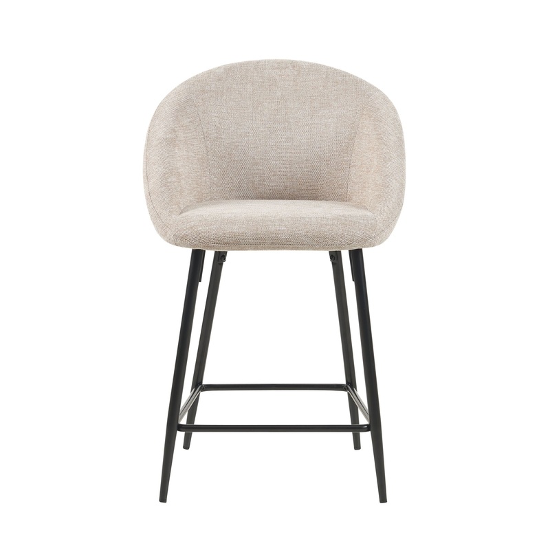 Upgrade your kitchen bench or bar area with the Aubrey Bar Stool in a soft biscuit colour. Made with a polyester fabric seat, foam padding, durable plywood backing and sturdy steel legs, it offers both comfort and support in a compact design. The gently curved backrest adds a refined touch while echoing the look of the matching Aubrey dining chair, making it easy to create a cohesive setting in your home.