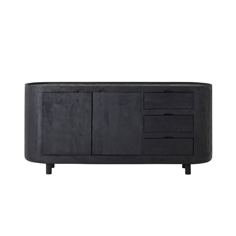 Add bold sophistication to your space with the Aurora Sideboard in black. Crafted from mango wood and MDF, this piece features a unique sandblasted finish that highlights the natural grain, bringing texture and depth to your dcor. The sleek black colour complements a wide range of interior styles, while the ample storage space with doors and drawers keeps your home organised and clutter-free. Ideal for the dining room or living area, its also available as an entertainment unit. Part of the Aurora range, this sideboard combines style and functionality with effortless elegance.