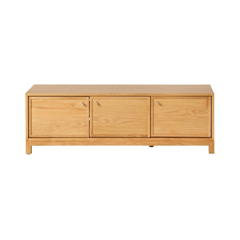 The Avalon 3 Door Entertainment Unit in Light Oak offers a clean, contemporary look for your living room. Made from oak, pine, MDF and oak veneer, its finished in a light oak colour with a smooth nitrocellulose lacquer for added protection. The three-door design provides practical storage, while the shadow line detailing and architectural lines create a modern feel. Part of the Avalon range, it is also available in a 4-door option. Assembly is a breeze, with knobs and handles to be attached.