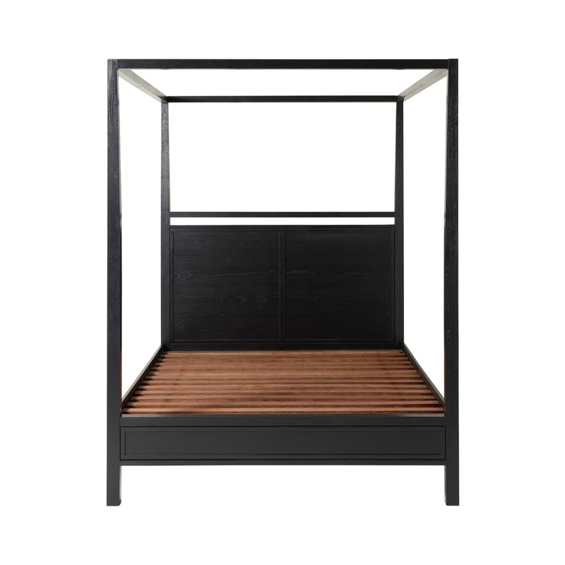The Avalon King Four Poster Bed in black brings a bold, modern touch to your bedroom. Made from oak, MDF, and oak veneer, it features clean lines with shadow line detail and a smooth nitrocellulose lacquer finish. The striking black colour creates a sophis
