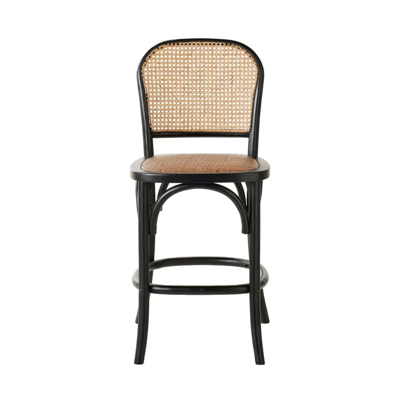 Whether enjoying your morning cuppa at the breakfast bar or an after-work wine at the cocktail bar, a comfortable stool is a lifestyle essential. Crafted from Elm with a sturdy frame, handy footrest and springy woven rattan seat and back. This bar stool features a natural rattan seat and painted-black Oak timber frame.