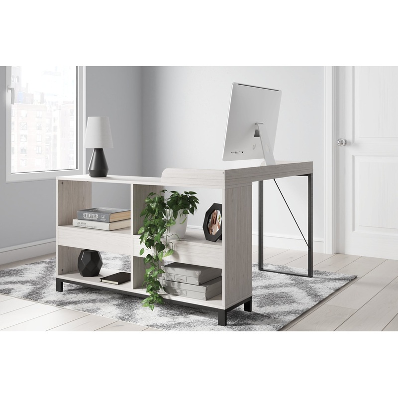 Love an urban farmhouse aesthetic? Make it work to your advantage with this L-desk. A simply striking choice in home office furniture, it has an unmistakably fresh feel thanks to a whitewashed finish and black metal frame. Attached to this casually chic de