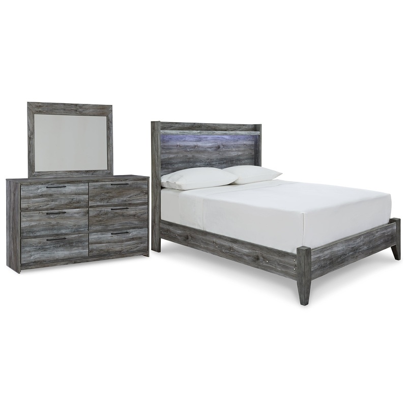 | Details | B221B21: Includes full panel headboard and footboard with rails, Made with engineered wood (MDF/particleboard) and decorative laminate, Smoky gray finish over replicated oak grain with authentic touch, Mattress and foundation/box spring available, sold separately, Assembly required, Bed is compatible with an adjustable base, B221B30: Includes dresser and mirror, Made with engineered wood (MDF/particleboard) and decorative laminate, Smoky gray finish over replicated oak grain with authentic touch, 6 smooth-gliding drawers, Linear pulls with antiqued gunmetal-tone finish, Faux linen finished drawer interiors, Mirror attaches to back of dresser; can also hang vertically or horizontally on wall, Safety is a top priority, clothing storage units are designed to meet the most current standard for stability, ASTM F 2057 (ASTM International), Drawers extend out to accommodate maximum access to drawer interior while maintaining safety, Assembly required, |