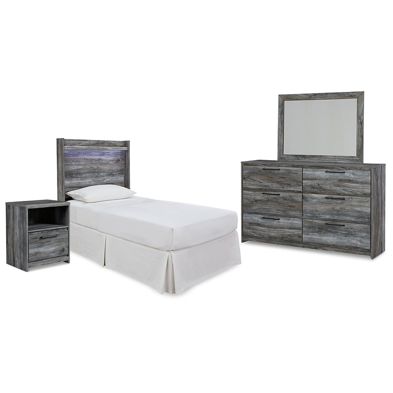 Baystorm Twin Panel Headboard with Mirrored Dresser and Nightstand