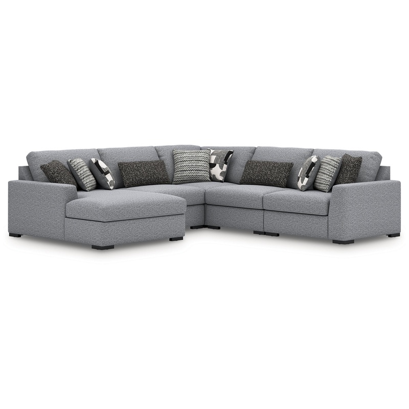 | Details | Includes 5 modular pieces: left-arm facing corner chaise, 2 armless chairs, wedge and right-arm facing corner chair, “Left-arm” and “right-arm” describe the position of the arm when you face the piece, Modular pieces can float anywhere; sides are finished (with no connectors), Corner-blocked frame, Reversible seat and back cushions; high-resiliency foam cushions wrapped in poly fiber, Accent pillows included; pillows with soft polyfill, Polyester upholstery , Next-Gen Nuvella is a family-friendly fabric that is soft, easy to clean, stain-resistant and durable , Easy-to-remove zippered covers for machine washing , Clean fabric with mild soap and water, let air dry; for stubborn stains, use a solution of 4 oz. bleach to 28 oz. water , Low-profile accent legs with faux wood finish, Platform foundation system resists sagging 3x better than spring system after 20,000 testing cycles by providing more even support, Smooth platform foundation maintains tight, wrinkle-free look without dips or sags that can occur over time with sinuous spring foundations |