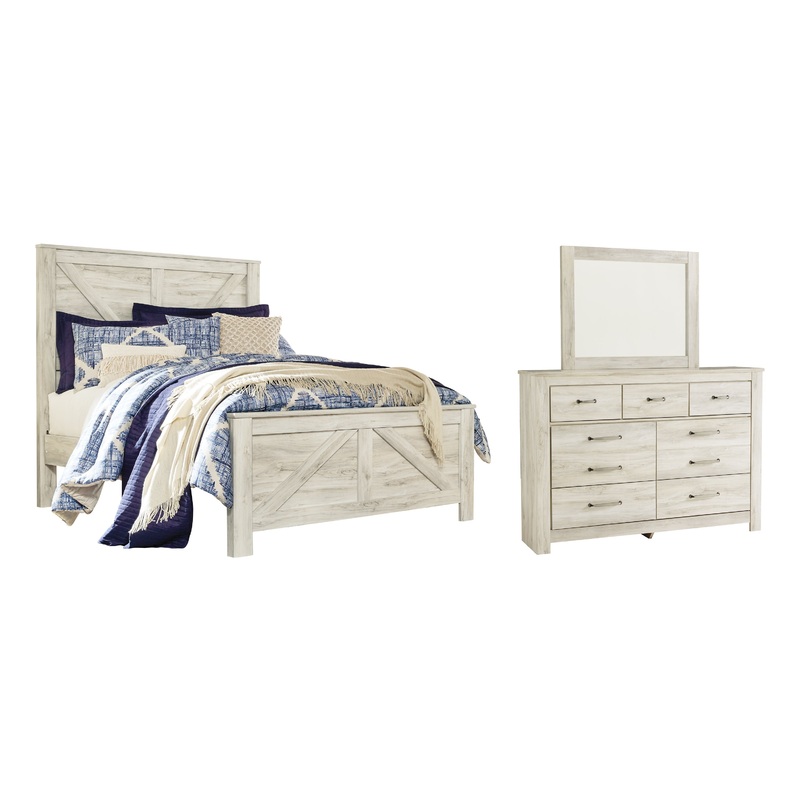 | Details | B331B6: Includes headboard, footboard and rails, Made of engineered wood (MDF/particleboard) and decorative laminate, Wispy white finish over replicated oak grain with authentic touch, Foundation/box spring required, sold separately, Mattress available, sold separately, Assembly required, Bed is compatible with an adjustable base, B331B1: Includes dresser and mirror, Made of engineered wood (MDF/particleboard) and decorative laminate, Wispy white finish over replicated oak grain with authentic touch, Brushed nickel-tone hardware with black edging, 7 smooth-gliding drawers (lined with faux linen laminate), Mirror attaches to back of dresser, Safety is a top priority, clothing storage units are designed to meet the most current standard for stability, ASTM F 2057 (ASTM International), Drawers extend out to accommodate maximum access to drawer interior while maintaining safety, Assembly required, |
