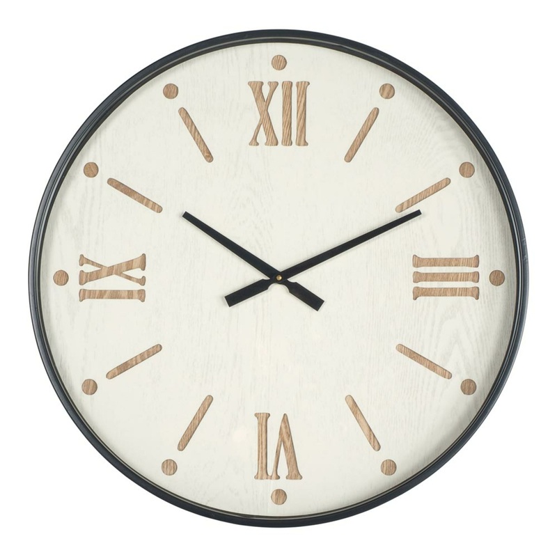 The BeyondTime Natural Face Roman Clock 60cm is a timeless addition to any room, offering a blend of classic design and modern materials. Crafted from iron with a polished finish, this clock features a natural wood face with elegant Roman numerals. Its neu