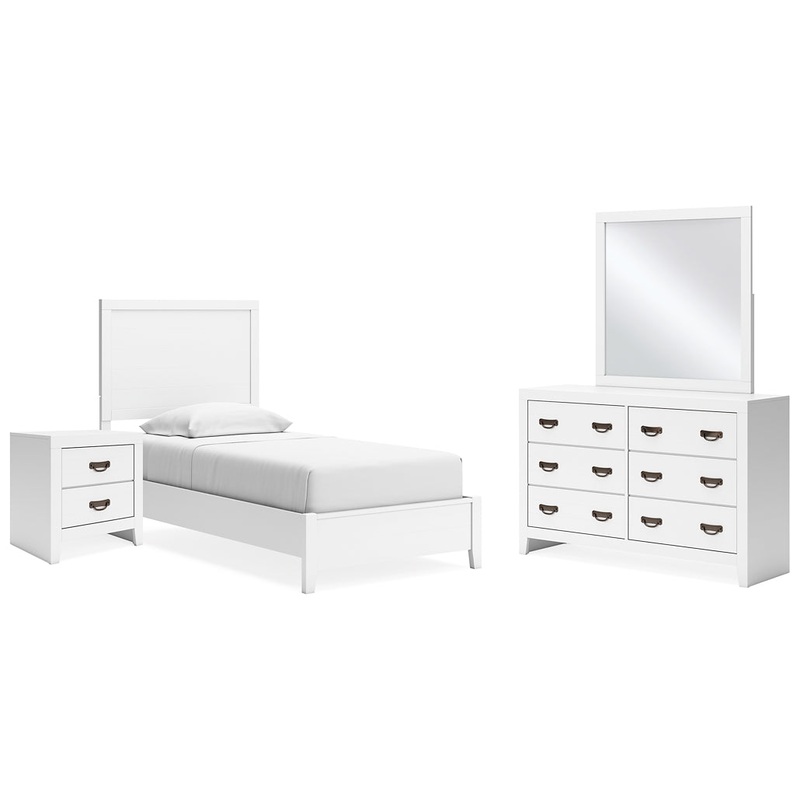 | Details | B427B2: Includes twin panel headboard, footboard, rails and slats, Made with hardwood solids, okoume veneer and MDF substrates, White finish, Foundation/box spring required, sold separately, Mattress available, sold separately, Assembly required, B427B1: Includes dresser and mirror, Made with hardwood solids, okoume veneer and MDF substrates, White finish, 6 drawers with dovetail construction and metal center guides, Hardware with dark finish, Drawer interiors are lined with a wood grain laminate for a clean, finished look, Mirror attaches to back of dresser, B427-92: Made with hardwood solids, okoume veneer and MDF substrates, White finish, 2 drawers with dovetail construction and metal center guides, Hardware with dark finish, Drawer interiors are lined with a clean wood grain laminate for a clean, finished look, |