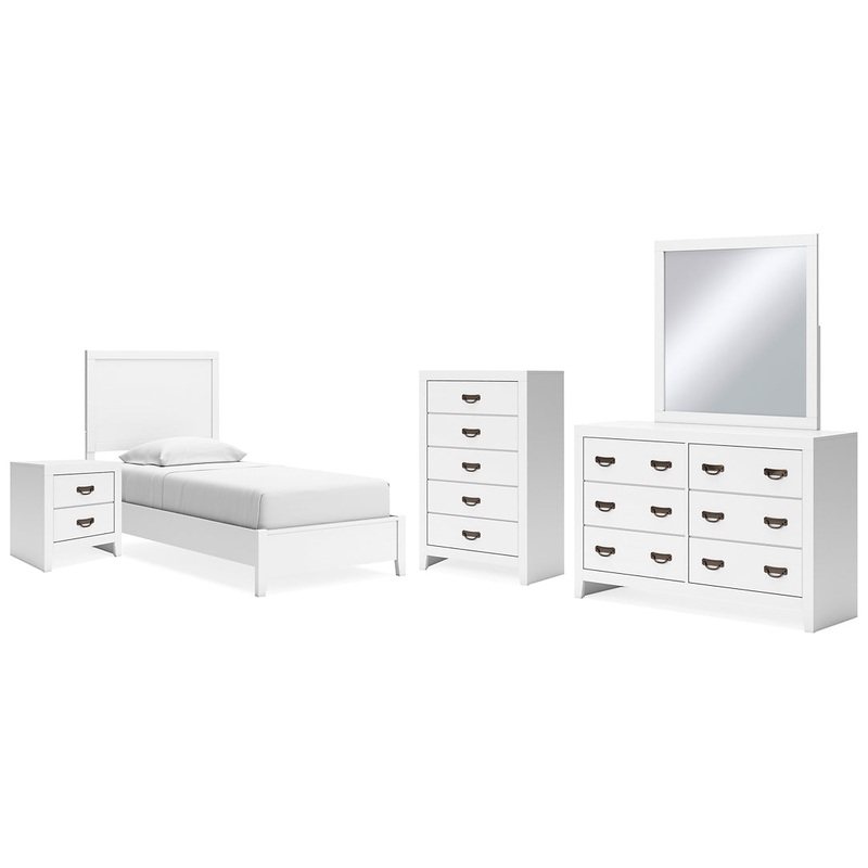| Details | B427B2: Includes twin panel headboard, footboard, rails and slats, Made with hardwood solids, okoume veneer and MDF substrates, White finish, Foundation/box spring required, sold separately, Mattress available, sold separately, Assembly required, B427B1: Includes dresser and mirror, Made with hardwood solids, okoume veneer and MDF substrates, White finish, 6 drawers with dovetail construction and metal center guides, Hardware with dark finish, Drawer interiors are lined with a wood grain laminate for a clean, finished look, Mirror attaches to back of dresser, B427-46: Made with hardwood solids, okoume veneer and MDF substrates, White finish, 5 drawers with dovetail construction and metal center guides, Hardware with dark finish, Drawer interiors are lined with a wood grain laminate for a clean, finished look, B427-92: Made with hardwood solids, okoume veneer and MDF substrates, White finish, 2 drawers with dovetail construction and metal center guides, Hardware with dark finish, Drawer interiors are lined with a clean wood grain laminate for a clean, finished look, |