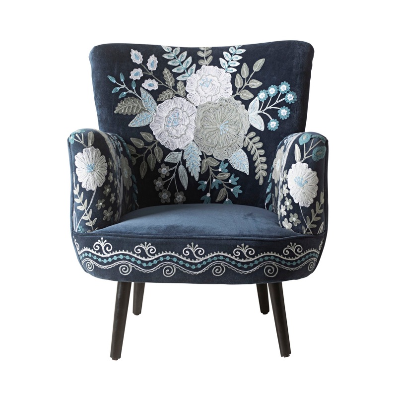 The rich tones of 100% cotton indigo blue fabric are the perfect backdrop for what can only be described as exceptional white floral hand embroidery. The Blooms Embroidered Armchair is a stunning piece that oozes elegance with a touch of retro charm, along with a sense of serenity and comfort through supportive foam cushioning. This floral armchair sits among the very best.