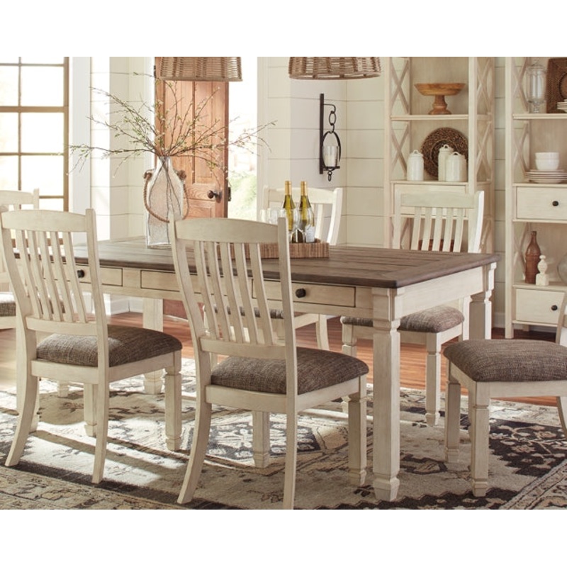 | Details | Made of veneers, wood and engineered wood, Two-tone textural finish; antique white with weathered oak finished top, 6 drawers; 3 each on each side, Seats up to 6, Assembly required |