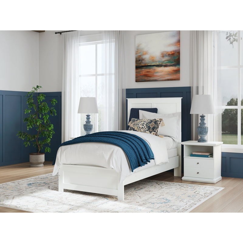 Includes panel headboard/footboard and rails, Made with engineered wood (MDF/particleboard/plywood) and decorative laminate for the right balance of affordability and durability, Replicated solid white paint, Decorative laminate replicates natural or man-made material surfaces with consistent color, pattern and texture, Foundation/box spring required, sold separately, Mattress available, sold separately, Assembly required |