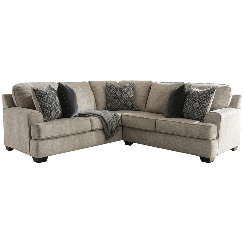 Whether your vision is clean and contemporary or cozy modern farmhouse, this sectional in a stone-tone neutral upholstery has the corner on style. Merging ultimate comfort with striking good looks, this chic sectional includes five coordinating accent pillows for that much more feel-good allure.