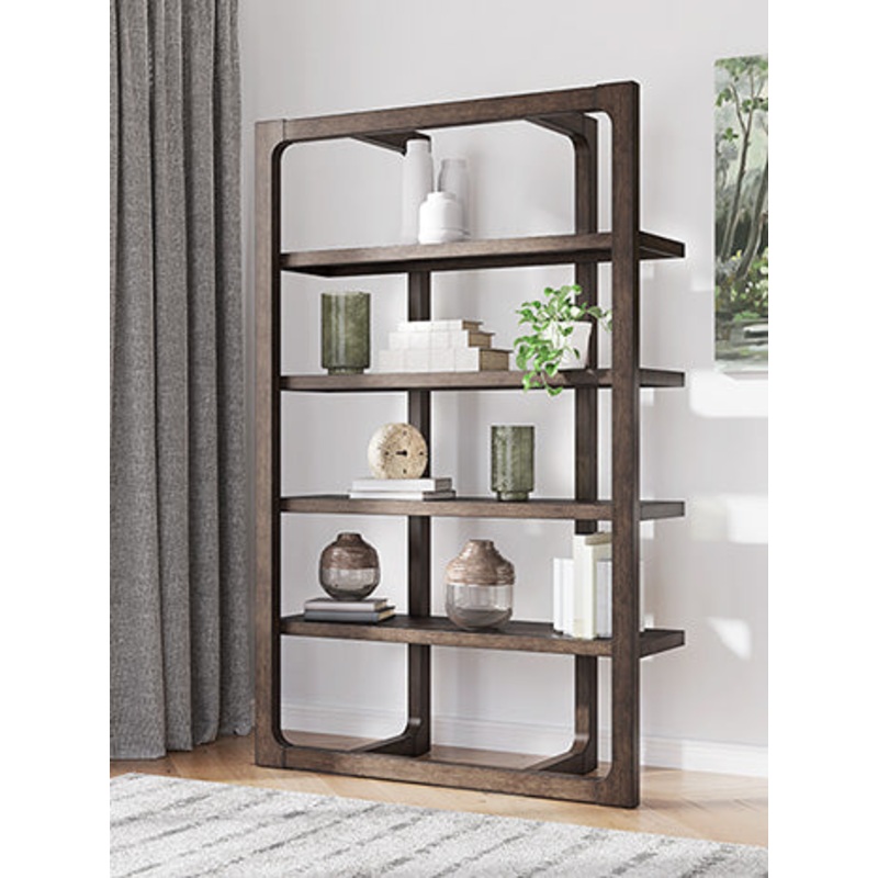 Classic meets contemporary in this home office bookcase. Its rich, dark wood tone and architectural character suit todays trends while balancing a timeless appeal. And with a unique open shelf design that’s perfect for storage and displaying decor, this bookcase gives your office a dose of both form and function.