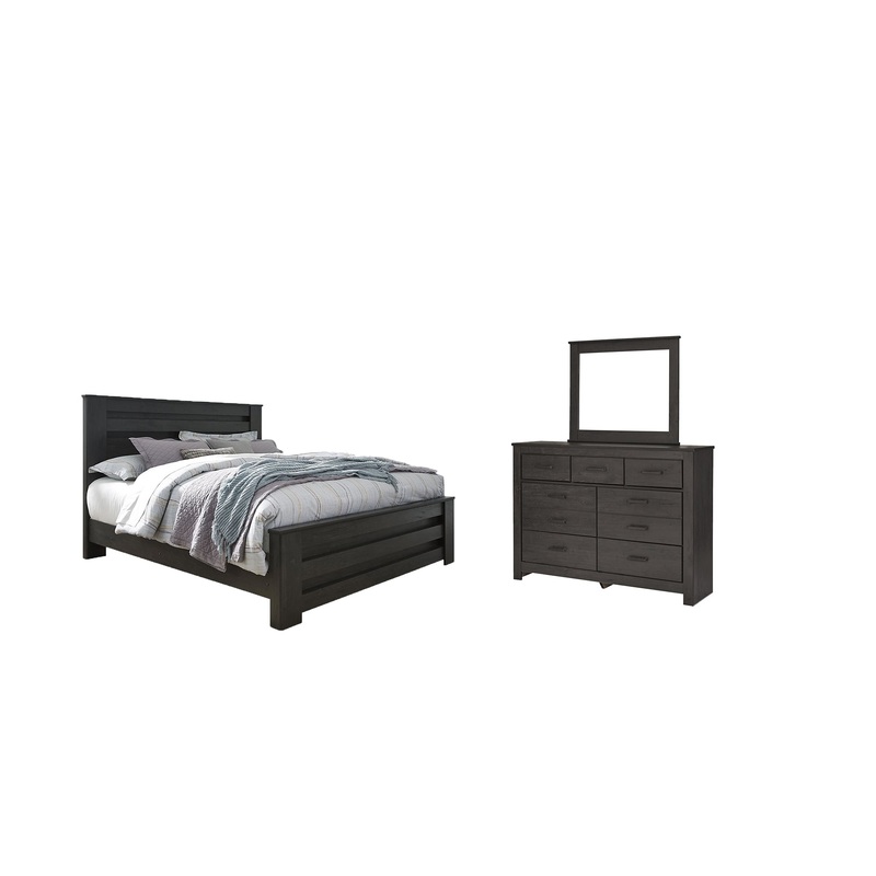 | Details | B249B1: Includes dresser and mirror, Made with engineered wood and decorative laminate, Dark charcoal finish over replicated oak grain, 7 smooth-gliding drawers; 3 drawer sizes, Linear pulls with dark pewter-tone finish, Mirror attaches to back of dresser, Safety is a top priority, clothing storage units are designed to meet the most current standard for stability, ASTM F 2057 (ASTM International), Drawers extend out to accommodate maximum access to drawer interior while maintaining safety, Assembly required, B249B4: Includes headboard, footboard and rails, Made with engineered wood (MDF/particleboard) and decorative laminate, Dark charcoal finish over replicated oak grain, Foundation/box spring required, sold separately, Mattress available, sold separately, Assembly required, Bed is compatible with an adjustable base, |