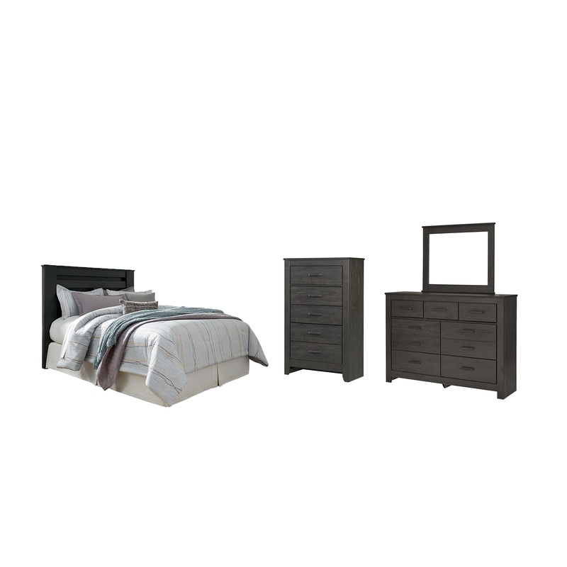 Details B249-46: Made with engineered wood (MDF/particleboard/plywood) and decorative laminate for the right balance of affordability and durability, Dark charcoal finish over replicated oak grain, Linear pulls with dark pewter-tone finish, 5 smooth-gliding drawers, Safety is a top priority, clothing storage units are designed to meet the most current standard for stability, ASTM F 2057 (ASTM International), Drawers extend out to accommodate maximum access to drawer interior while maintaining safety, Assembly required, B249-67: Hardware not included, Made with engineered wood (MDF/particleboard/plywood) and decorative laminate for the right balance of affordability and durability, Dark charcoal finish over replicated oak grain, ” bolts are needed to attach headboard to existing bed frame, Bolt length depends on thickness of your bed frame, Assembly required, B249B1: Includes dresser and mirror, Made with engineered wood and decorative laminate, Dark charcoal finish over replicated oak grain, 7 smooth-gliding drawers; 3 drawer sizes, Linear pulls with dark pewter-tone finish, Mirror attaches to back of dresser, Safety is a top priority, clothing storage units are designed to meet the most current standard for stability, ASTM F 2057 (ASTM International), Drawers extend out to accommodate maximum access to drawer interior while maintaining safety, Assembly required,