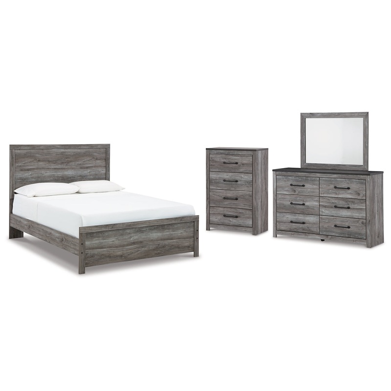 | Details | B1290B2: Includes queen panel headboard/footboard and rails, Made with engineered wood (MDF/particleboard/plywood) and decorative laminate for the right balance of affordability and durability, Smoky gray finish over replicated oak grain with authentic touch, Decorative laminate replicates natural or man-made material surfaces with consistent color, pattern and texture, Foundation/box spring required, sold separately, Mattress available, sold separately, Assembly required, Bed is compatible with an adjustable base, B1290B1: Includes dresser and mirror, Made with engineered wood (MDF/particleboard/plywood) and decorative laminate for the right balance of affordability and durability, Two-tone look: smoky gray replicated oak grain accented with rustic charcoal finish; replicated oak grain with authentic touch, Charcoal finish over replicated oak grain with authentic touch, Decorative laminate replicates natural or man-made material surfaces with consistent color, pattern and texture, Large-scaled handles in a dark hue, 6 smooth-gliding drawers with dovetail construction, Drawer interiors are lined with a faux linen laminate for a clean, finished look, Framed front and pilasters, Mirror attaches to back of dresser; can also be mounted on wall horizontally or vertically, Safety is a top priority, clothing storage units are designed to meet the most current standard for stability, ASTM F 2057 (ASTM International), Drawers extend out to accommodate maximum access to drawer interior while maintaining safety, Assembly required, B1290-44: Expertly made with engineered wood (MDF/particleboard/plywood) for the right balance of affordability and durability, Decorative laminate replicates natural or man-made material surfaces with consistent color, pattern and texture, Two-tone look: smoky gray replicated oak grain accented with rustic charcoal finish; replicated oak grain with authentic touch, Large-scaled handles in a dark hue, 4 smooth-gliding drawers with dovetail construction, Drawer interiors are lined with a faux linen laminate for a clean, finished look, Framed front and pilasters, Safety is a top priority, clothing storage units are designed to meet the most current standard for stability, ASTM F 2057 (ASTM International), Drawers extend out to accommodate maximum access to drawer interior while maintaining safety, Assembly required, |
