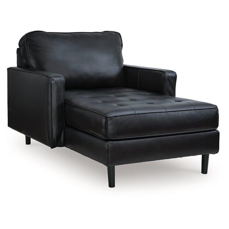 This chaise embodies timeless mid-century elegance with its linear design, sleek track arms and tapered legs. Genuine leather in the seating area adds a luxurious touch to the overall look. Experience endless style opportunities for today’s living spaces.