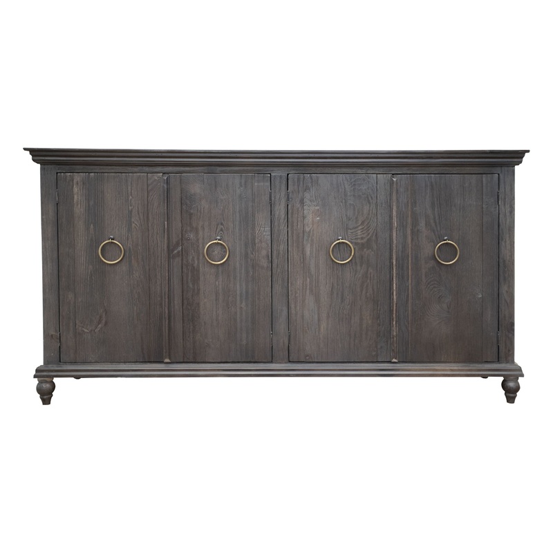 4 Door Console. The Capri console effortlessly introduces a rustic charm to your space. Inspired by the old world, its design features clean lines and hand-turned feet, culminating in a meticulous finish of hand-distressed wood.Capri - Console - Charcoal73