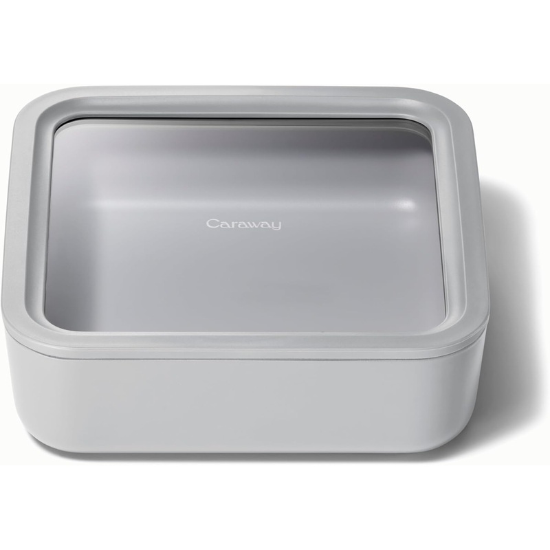 Caraway Glass Food Storage, 10 Cup Glass Container,Ceramic Coated Food Container,Easy to Store, Non Toxic, Non Stick Lunch Box Container with Glass Lids. Dishwasher, Oven,Square Shape,Gray KEEP YOUR FOOD FRESH: Look forward to leftovers with Caraways easy-