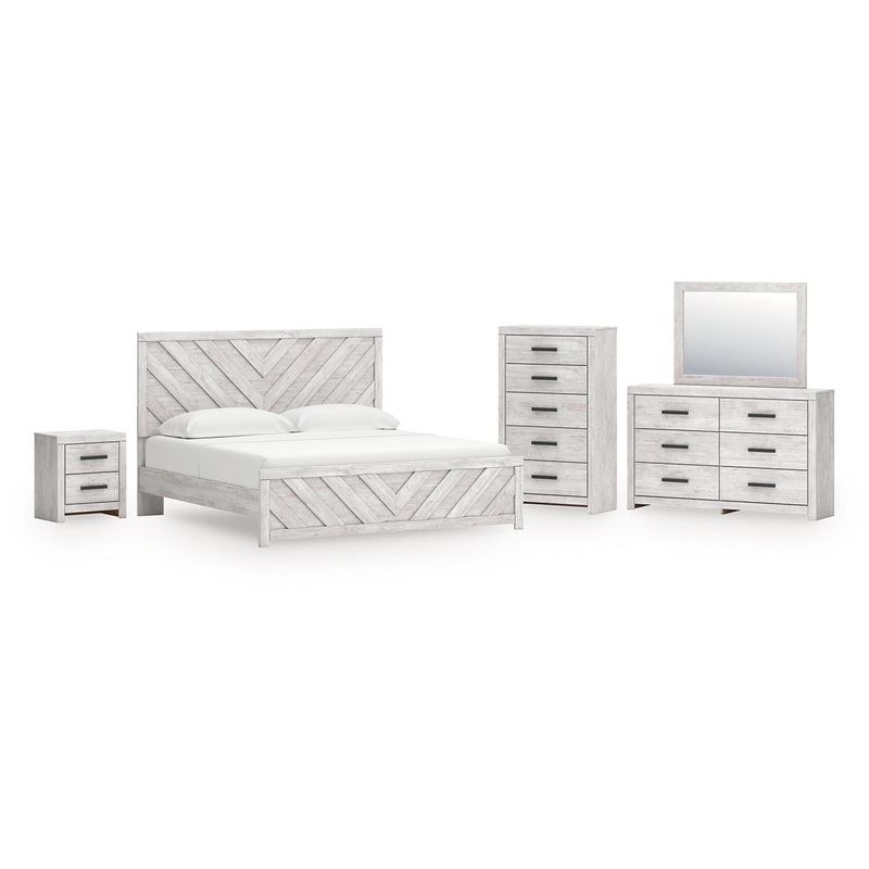 Cayboni King Panel Bed with Mirrored Dresser, Chest and Nightstand