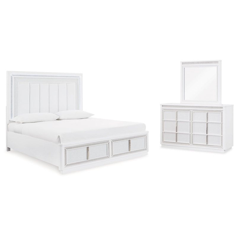 | Details | B822B2: Includes queen upholstered headboard, storage footboard, rails and roll slats, Made with solid wood components, MDF substrate and decorative laminate, White lacquer finish, Vertical metal drawer pulls, Faux leather upholstery, Built-in LED lighting with 3-way dimmer switch, 2 drawers with fully finished interior, dovetail construction and ball-bearing side glides, Drawers with rhinestone frames; textured laminate drawer fronts, Power cord included; UL Listed, Bed does not require additional foundation/box spring; accommodates most zero clearance adjustable bases with the addition of a bunkie board, Mattress available, sold separately, Assembly required, B822B1: Includes dresser and mirror, Made with solid wood components, MDF substrate and decorative laminate, White lacquer finish, Vertical metal drawer pulls, Built-in LED lighting with 3-way dimmer switch, 6 drawers with fully finished interior, dovetail construction and heavy duty ball-bearing side glides, Drawers with rhinestone frames; textured laminate drawer fronts, Mirror attaches to back of dresser, Power cord included; UL Listed, |