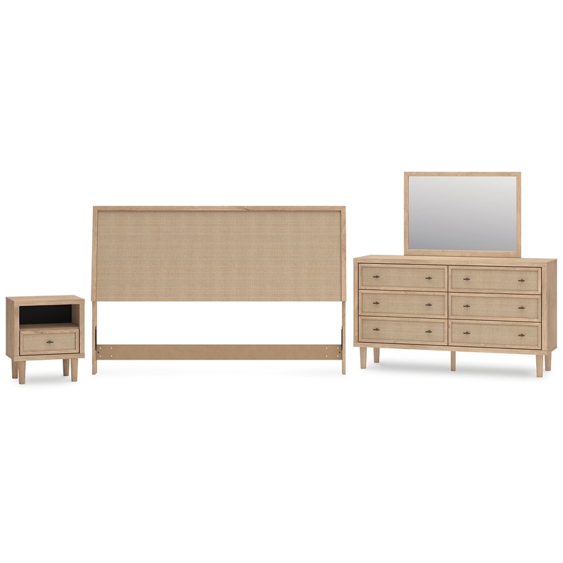 Details B1199-58: Made with engineered wood (MDF/particleboard/plywood) and decorative laminate for the right balance of affordability and durability, Dry, light finish with replicated oak grain and authentic touch, Decorative laminate replicates natural or man-made material surfaces with consistent color, pattern and texture, Headboard panel with textured beige finish that replicates the look of cane, ” bolts (not included) are needed to attach headboard to existing bed frame, Minor assembly required, B1199-91: Made with engineered wood (MDF/particleboard/plywood) and decorative laminate for the right balance of affordability and durability, Dry, light finish with replicated oak grain and authentic touch, Decorative laminate replicates natural or man-made material surfaces with consistent color, pattern and texture, Framed front and pilasters, Framed drawer fronts with replicated beige cane finish, Bronze-tone knob, Smooth-gliding drawer, Drawer interior is lined with a faux linen laminate for a clean, finished look, Built-in LED lighting on base; 3 levels of brightness; touch button control, USB and wireless charging options, Power cord included; UL Listed, Minor assembly required, simply lay flat and attach feet, B1199B1: Includes dresser and mirror, Made with engineered wood (MDF/particleboard/plywood) and decorative laminate for the right balance of affordability and durability, Dry, light finish with replicated oak grain and authentic touch, Decorative laminate replicates natural or man-made material surfaces with consistent color, pattern and texture , Dresser with framed front and pilasters, Framed drawer fronts with replicated beige cane finish, Bronze-tone knobs, 6 smooth-gliding drawers , Drawer interiors are lined with a faux linen laminate for a clean, finished look, Safety is a top priority, clothing storage units are designed to meet the most current standard for stability, ASTM F 2057 (ASTM International), Drawers extend out to accommodate maximum access to drawer interior while maintaining safety, Mirror attaches to back of dresser; can also be mounted on wall horizontally or vertically, Minor assembly required, simply lay flat and attach feet,