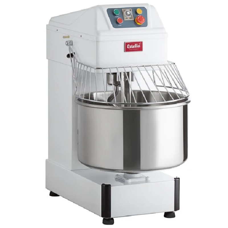 The Estella 50 Litres mixer also features a steel grated lid that allows for ingredients such as flour to be added to the dough as it is mixing without having to shut it off. The grate also keeps employees from sticking their hands in the bowl when the mixer is on, improving safety.