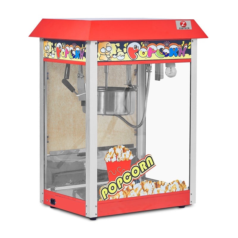 Commercial Electric Popcorn Maker Machine HP-6B This commercial machine will keep hot popcorn flowing as quickly as your customers can eat it up! The units bright red stainless steel frame and printed graphics will catch the eye of passing customers and dr