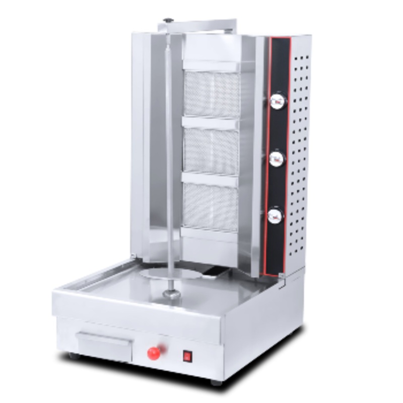 Commercial Gas Shawarma Doner Kebab Machine 3 Burners Create delicious strips of meat for your gyros or doner kebabs with this natural gas doner kebab machine / vertical broiler with a big capacity. Designed for high performance and consistent results, thi