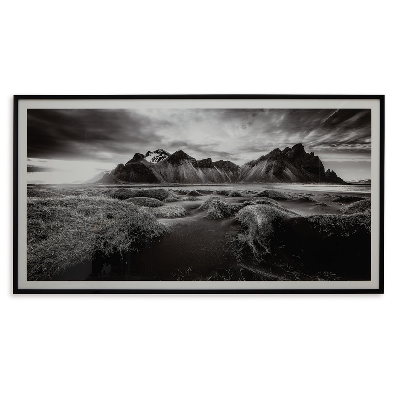 If you have your sights set on a striking landscape, this wall art is a natural wonder. Staggeringly beautiful, the framed black and white print showcases majestic mountains and a meandering stream. This moody and marvelous piece adds an air of dramatic beauty to your modern decor.