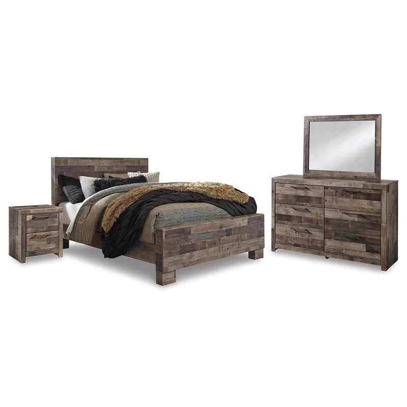 Derekson Queen Panel Bed with Mirrored Dresser and Nightstand