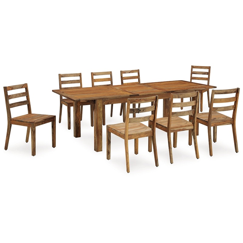 Details D790-35: Made with sheesham wood, veneer and MDF substrate, Clear natural wood-tone finish, Self-storing butterfly leaf, Seats up to 8, Assembly required, D790-01: Made with sheesham wood, Clear natural wood-tone finish, Assembly required,