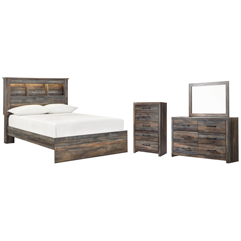 Drystan Full Bookcase Bed with Mirrored Dresser and Chest