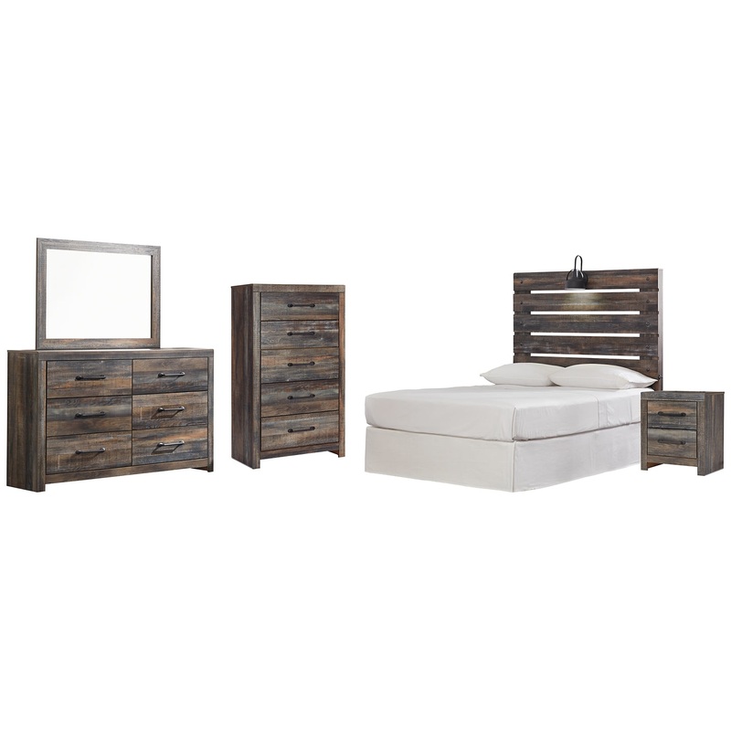Drystan Full Panel Headboard with Mirrored Dresser, Chest and Nightstand