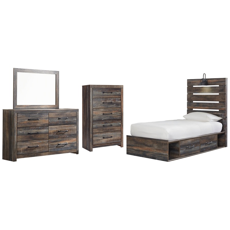 | Drystan Twin Panel Bed with 4 Storage Drawers | 42”W x 80.5”D x 60.75”H |