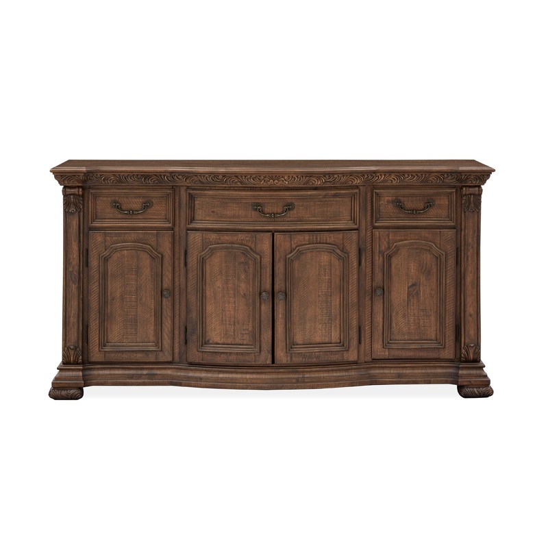 Grand yet casual, luxurious yet laid-back, Durango is an Old World-inspired traditional dining room collection that imparts a fresh allure to classic design. Reminiscent of garden gates, a recurring scroll work design element is featured throughout the col